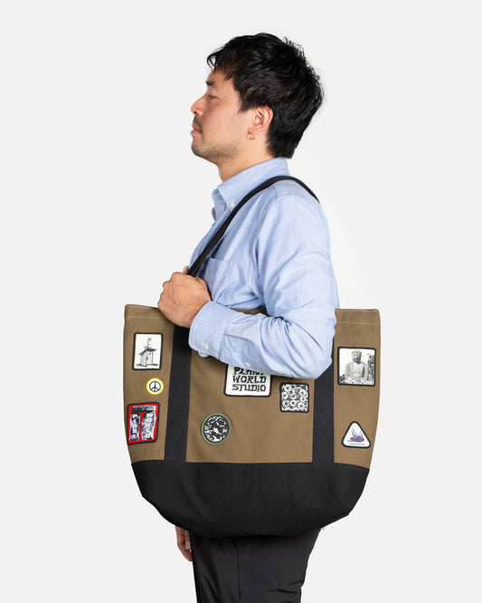 Sold outPATCHED CARRY TOTE - OLIVE BROWN